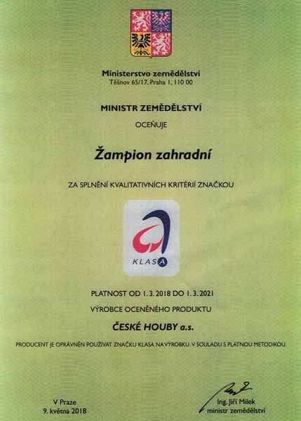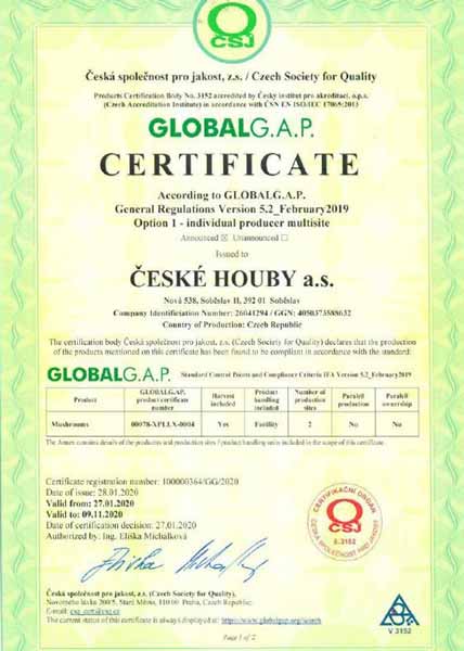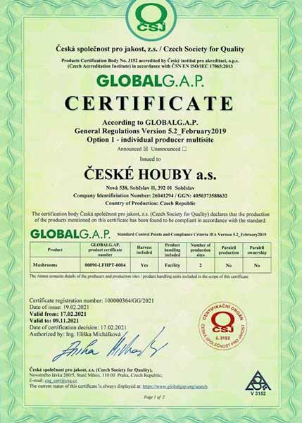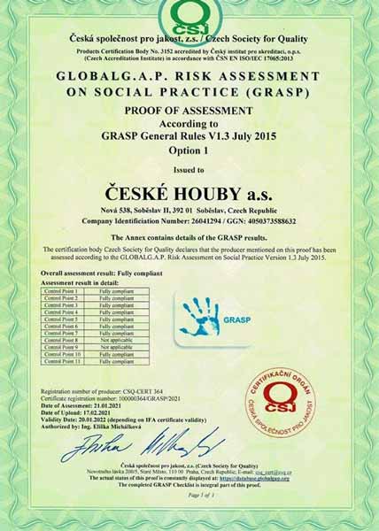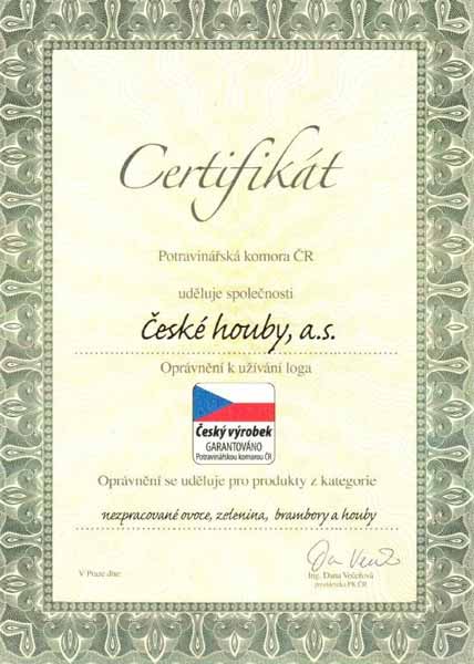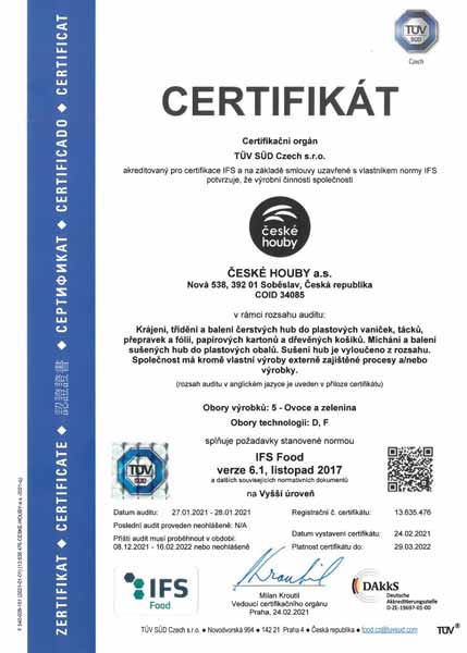 Naše společnost je pravidelně auditována a splňuje veškeré hygienické standardy. Jsme držitelé certifikátů IFS Standard, GlobalGap, GRASP a ocenění Klasa, Český výrobek – garantováno potravinářskou komorou ČR.